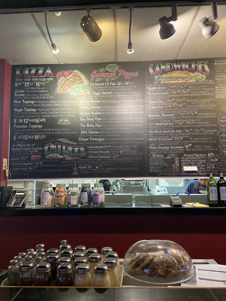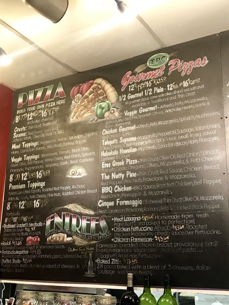 Thin crust, olive oil, mozzarella, feta, red onion, spinach, tomato, garlic, oregano, olive.