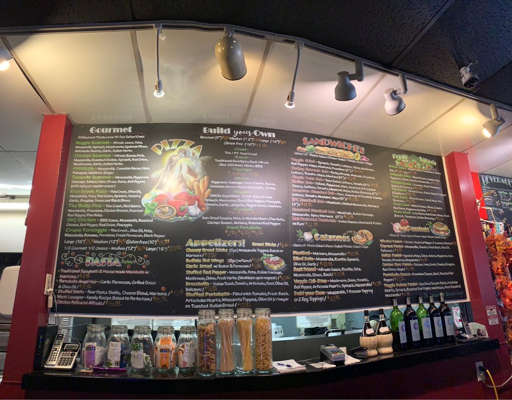 Alfredo sauce, feta, mozzarella, spinach, mushrooms, Spanish olives, artichoke hearts, garlic, italian seasoning.